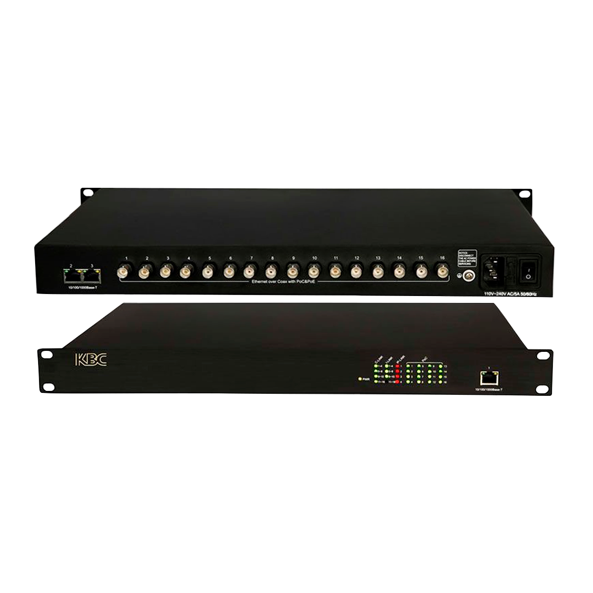 EECF16-GN3-R est un récepteur Ethernet over Coax (EoC) avec 16 ports coaxiaux avec Power Over Coax (PoC) et 3*10/100/1000M ports Ethernet. Ce récepteur offre une connectivité jusqu’à 16 unités PoC/PoE version émetteur EECF1-LS1-T-MN-B. L’alimentation est fournie à l’émetteur par le câble coaxial. Différents débits de données sont pris en charge en fonction de la distance et de la qualité du câble. Ce produit offre également une gestion PoC qui permet à l’opérateur d’allumer ou d’éteindre à distance l’un des canaux coaxiaux. La conception « plug-and-play » assure une installation facile sans aucun réglage électrique. Des indicateurs LED sont fournis pour montrer clairement l’état de fonctionnement de l’unité. Ce récepteur est disponible en configuration rack 1U.