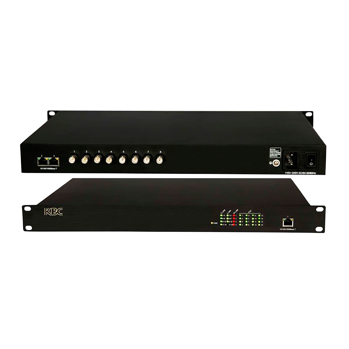La KBC eCopper™ EECF8-GN3-R-Rz-B. Les produits KBC eCopper™line offrent un moyen économique de connecter les dernières caméras IP à une station de surveillance à distance en utilisant le câblage coaxial ou en cuivre (UTP) existant. Outre les économies de temps et d’argent réalisées grâce à la mise à niveau de l’infrastructure de câblage vers le système CAT5/5e/6, eCopper™powers ses caméras émettrices et distantes, éliminant ainsi le besoin de toute source d’alimentation supplémentaire sur le site de la caméra. eCopper™also étend la distance de câblage des caméras IP de 100 à 300 mètres, ce qui en fait un produit idéal pour la mise à niveau des caméras analogiques vers les caméras IP et d’autres systèmes dans les grands bâtiments d’entreprise, les commerces de détail, les casinos, les banques, les prisons, les stades et d’autres applications. Le KBC EECF8-GN3-R est un récepteur Ethernet over Coax (EOC) avec 8 ports coaxiaux avec Power Over Coax (PoC) et 3*10/100/1000M ports Ethernet. Ce récepteur offre une connectivité jusqu’à 8 unités PoC/PoE version émetteur EECF1-LS1-T-MN-B. L’alimentation est fournie à l’émetteur par le câble coaxial. Différents débits de données sont pris en charge en fonction de la distance et de la qualité du câble. Ce produit offre également une gestion PoC qui permet à l’opérateur d’allumer ou d’éteindre à distance l’un des canaux coaxiaux. La conception « plug-and-play » assure une installation facile sans aucun réglage électrique. Des indicateurs LED sont fournis pour montrer clairement l’état de fonctionnement de l’unité. Ce récepteur est disponible en configuration rack 1U.