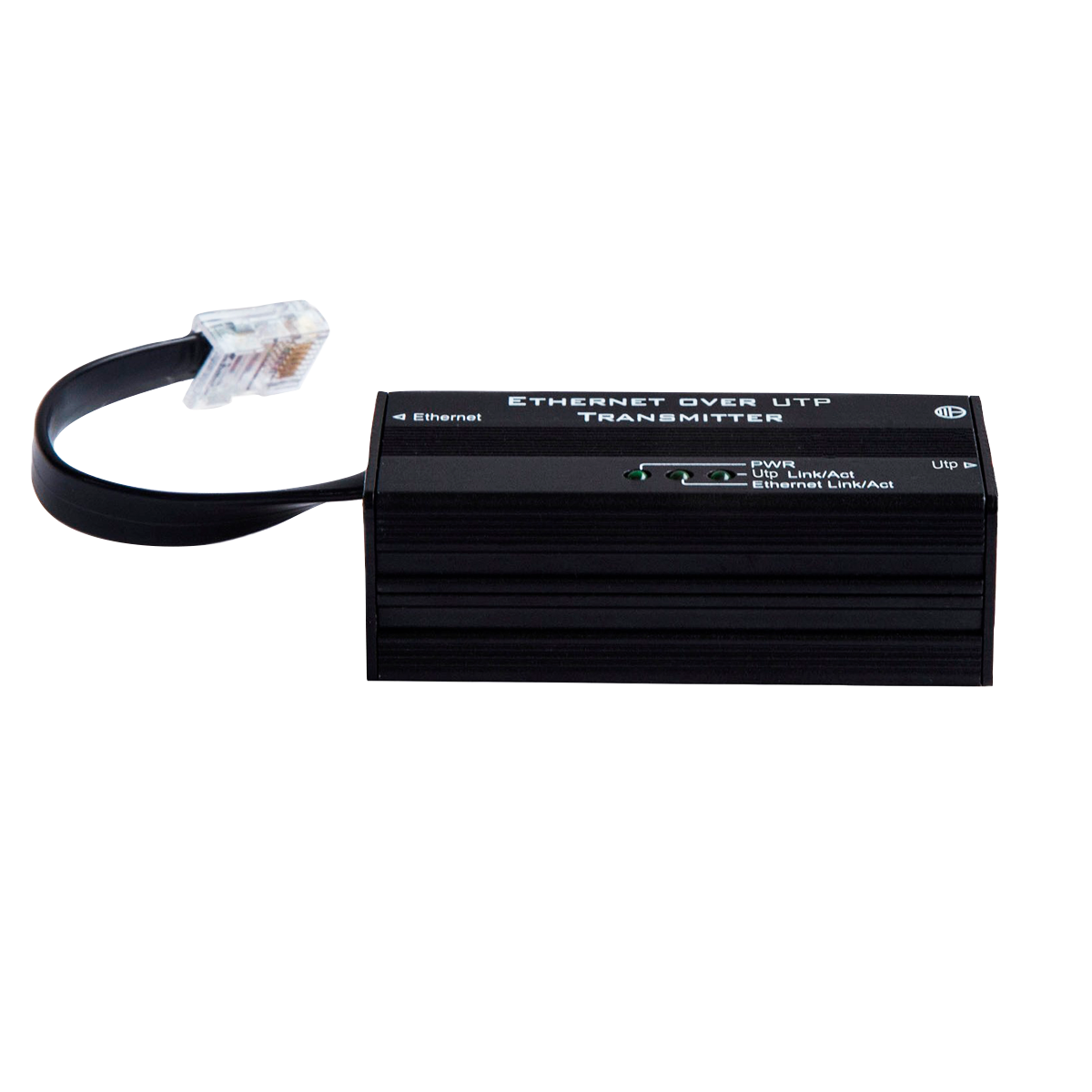 The KBC eCopper™The KBC EERF1-LS1-T-IN-Bis a fully ruggedized Ethernet over UTP transmitter. This transmitter provides connectivity for one 10/100Mbps IEEE standard electrical copper port over UTP cable. Power is suppliedfrom one of the headend Receivers, EERF16-G3-R-RX-B, EERF8-G3-R-RX-B, EERF4-DN1-R-WN-B or EERF1-LS1-R-MN-B Ethernet over UTP units through the UTP cable by Power over Wire (PoW) technology. The transmitter provides direct PoE+ support. Varying data rates are supported depending on cable distance and quality. The plug-and-play design ensures ease of installation with no electrical adjustment needed. LED indicators are provided to show the operational status of the unit.The Ethernet port of the transmitterincludes a flying cable.