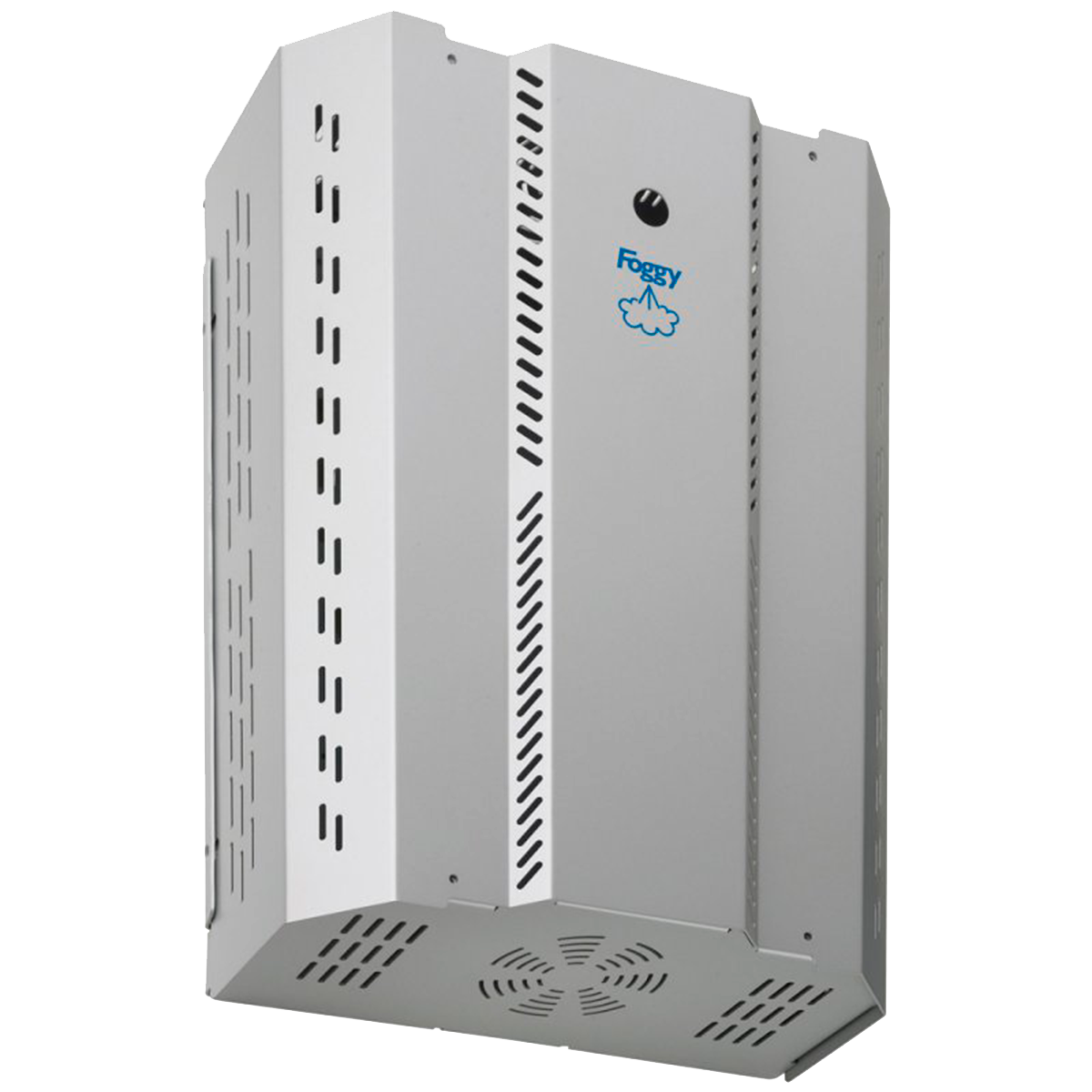 Generatore di nebbia di sicurezza bianco con serbatoio ricaricato e regolare ER90. Foggy, in aggiunta a un sistema di intrusione, completa l’efficienza della rilevazione con una protezione “attiva” del sito. La nebbia generata crea un disorientamento naturale, impedendo ai ladri di completare il furto.