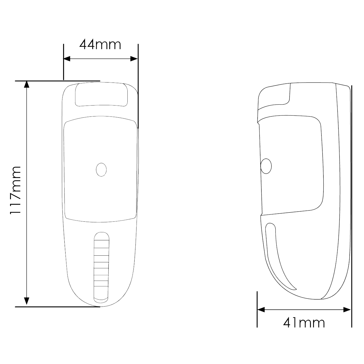 • DIMENSIONI: 117mm(h) x 44mm(w) x 41mm(d)